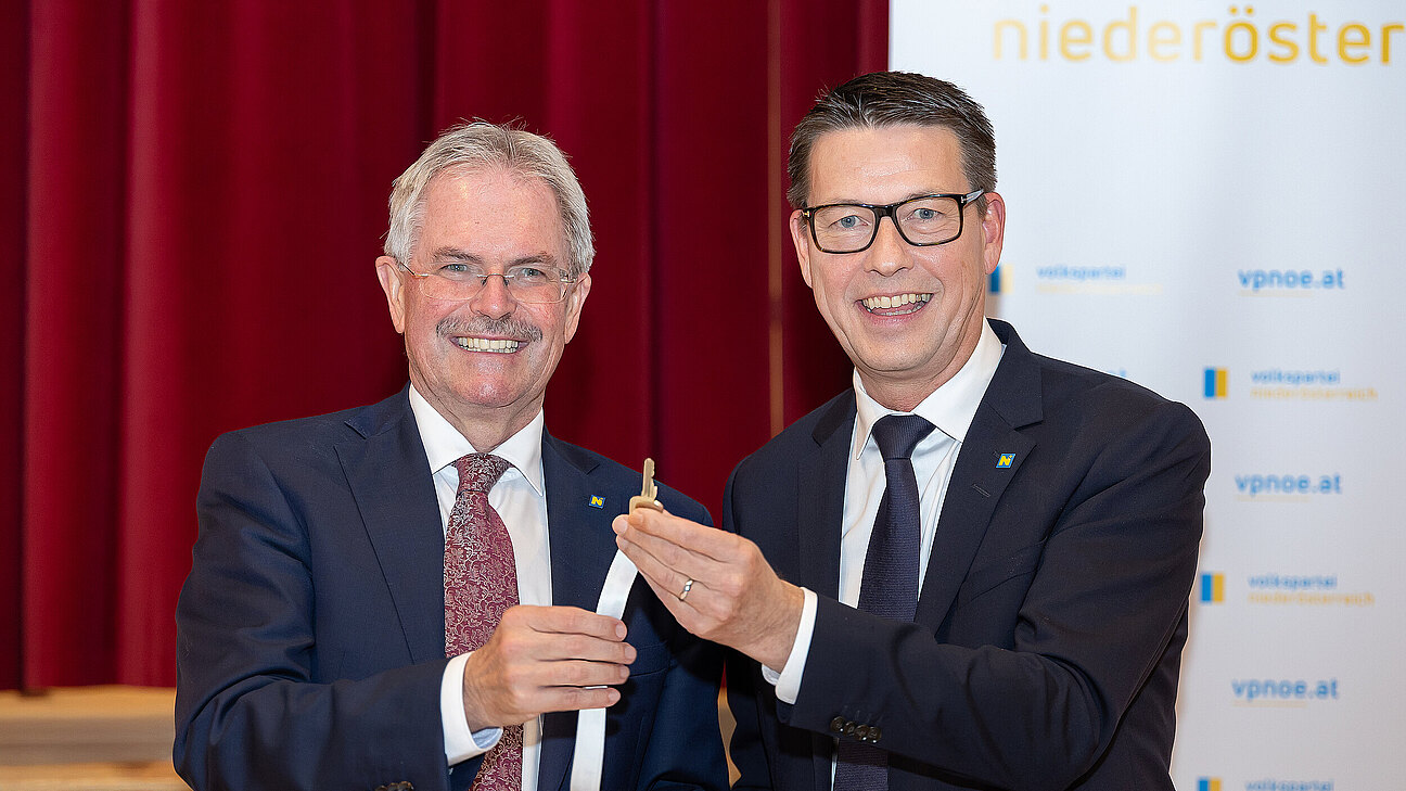 Mistelbach, 18.10.2025 - Nach einem Vierteljahrhundert an der Spitze der Volkspartei im Bezirk Mistelbach hat Karl „Carlo“ Wilfing beim Bezirksparteitag der VP Mistelbach den Vorsitz übergeben. Seit dem 1. März 2000 leitete er die Bezirksorganisation und prägte in diesen 25 Jahren die Entwicklung des Bezirks und der gesamten Region maßgeblich mit. Mit seiner Wahl zum Landesobmann der NÖ Senioren im Sommer 2025 ist für Wilfing nun der Zeitpunkt gekommen, die Verantwortung für die Volkspartei im Bezirk Mistelbach in jüngere Hände zu legen. Die Delegierten wählten den langjährigen Abgeordneten des Bezirks Mistelbach – und nunmehrigen Klubobmann Kurt Hackl – zu seinem Nachfolger.